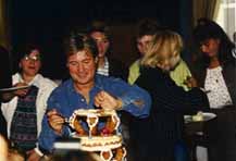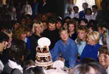 C.Jérôme entouré de ses amis... En maître des lieux, c'est aussi lui qui découpait le gâteau.